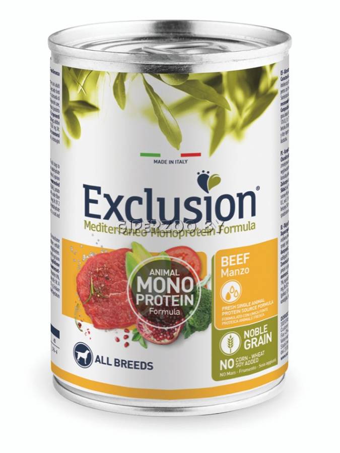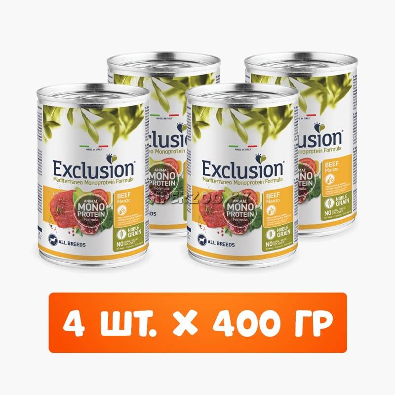 Консервы для собак EXCLUSION Monoprotein (говядина), 400 гр*4 шт – полнорационный сбалансированный корм, разработанный с использованием животного белка для взрослых собак.
