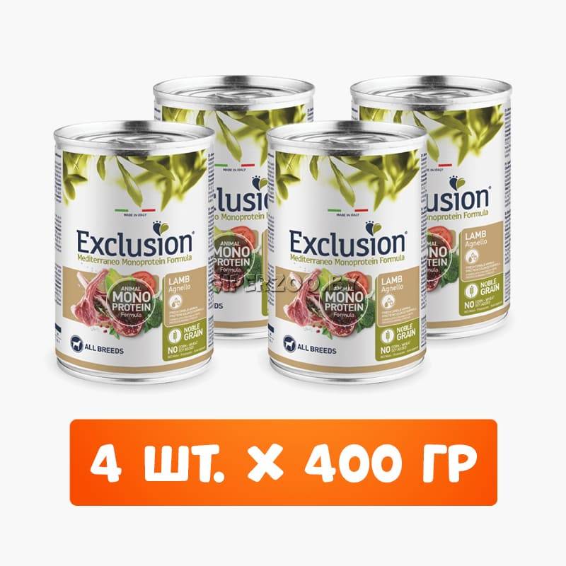 Консервы для собак всех пород EXCLUSION Monoprotein (ягненок), 400 гр*4 шт – полнорационный сбалансированный корм, разработанный с использованием животного белка для взрослых собак.