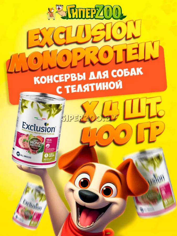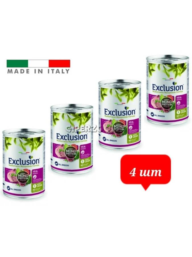 EXCLUSION Monoprotein (телятина), 400гр*4шт - монопротеиновый рацион на основе белка животного происхождения с телятиной для взрослых собак всех пород.