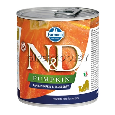 Farmina N&D Dog Puppy Mini Lamb, Pumpkin & Blueberry (ягненок, тыква, яерника), 285 гр - это полнорационный беззерновой влажный корм для щенков, беременных и кормящих собак мелких пород.