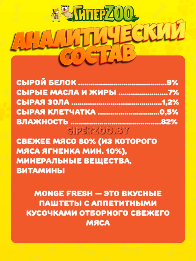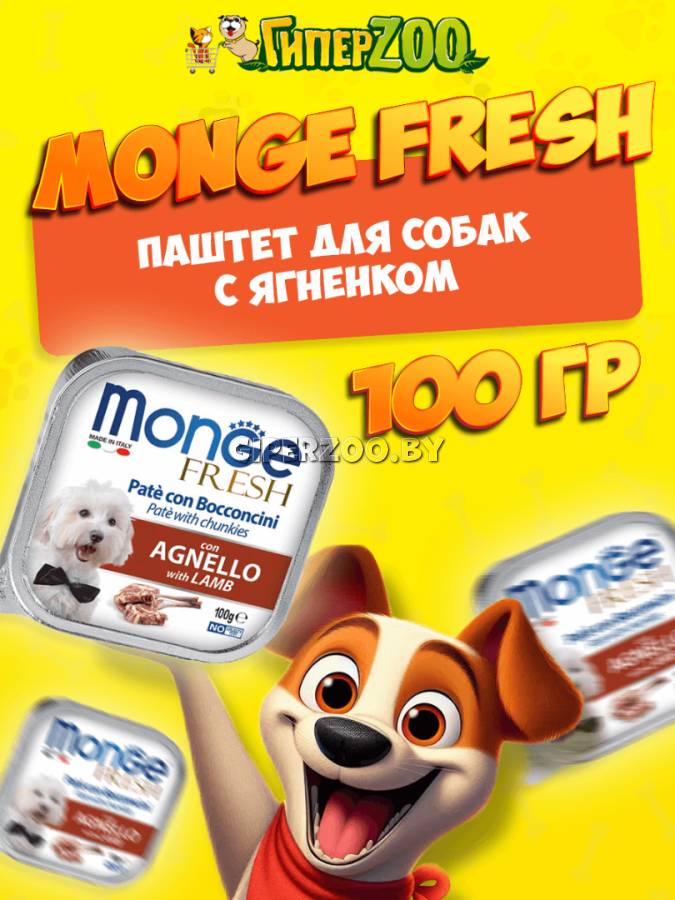Monge Dog Fresh Lamb Pate (паштет, ягненок), 100 гр - это полнорационный влажный корм для собак. Паштет из мяса ягненка.