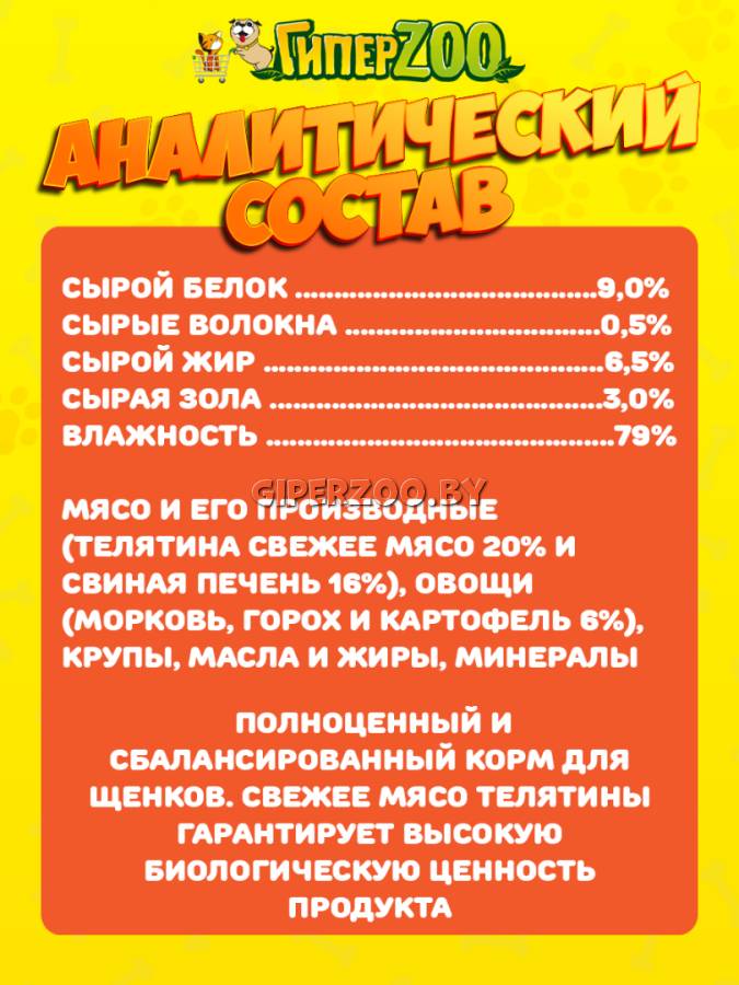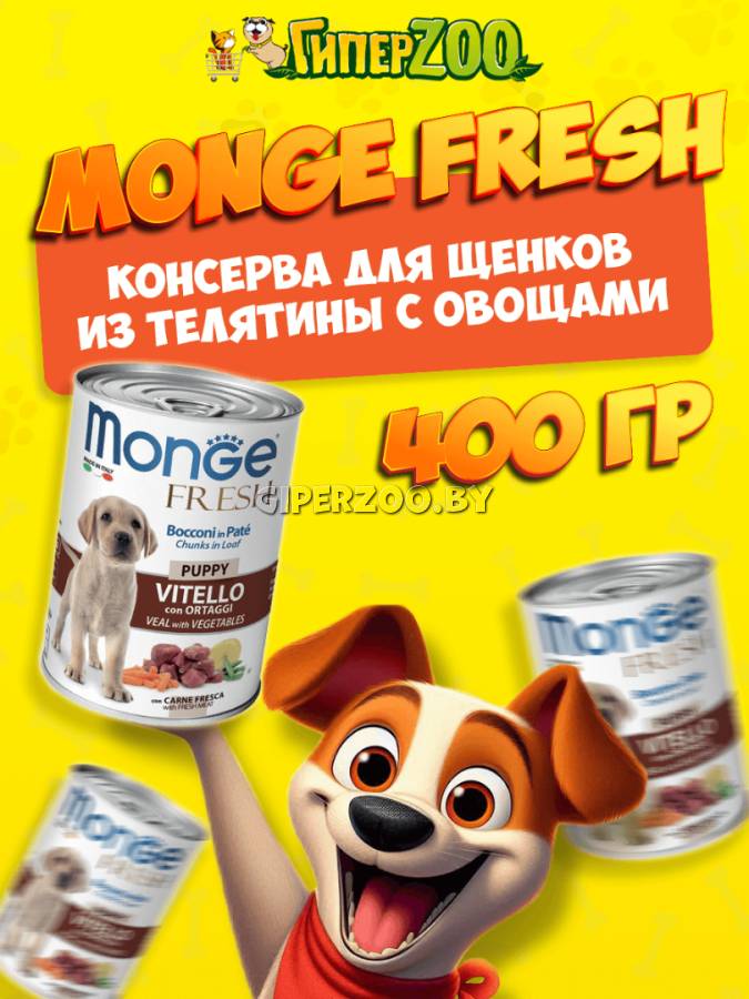 Monge Консервы Fresh Puppy (Телятина с овощами) — это полноценный и сбалансированный корм для щенков.