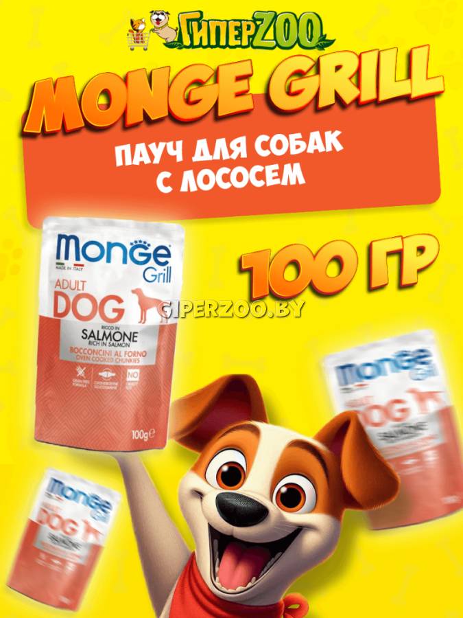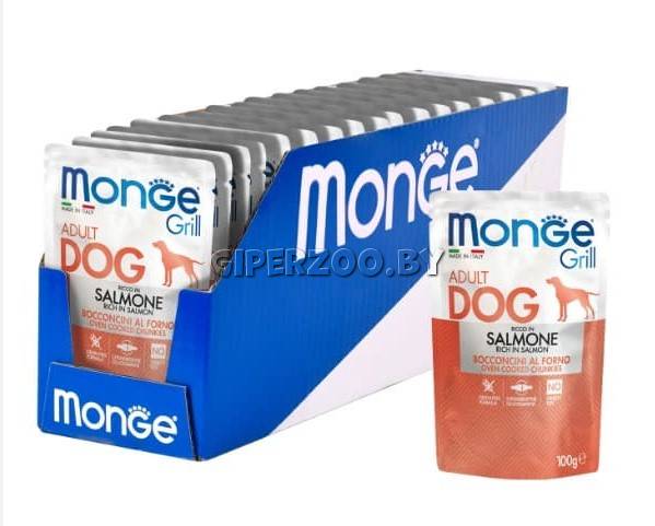 Monge Пауч Grill Adult Dog (Лосось) — это полноценный и сбалансированный корм для собак с лососем.