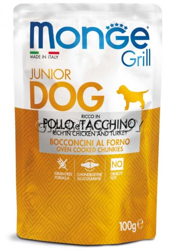Monge Dog Grill Puppy&Junior Chicken&Turkey (желе, курица и индейка), 100 гр - полноценный корм для щенков, разработанный специально, чтобы порадовать наших четвероногих друзей.