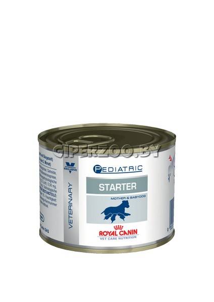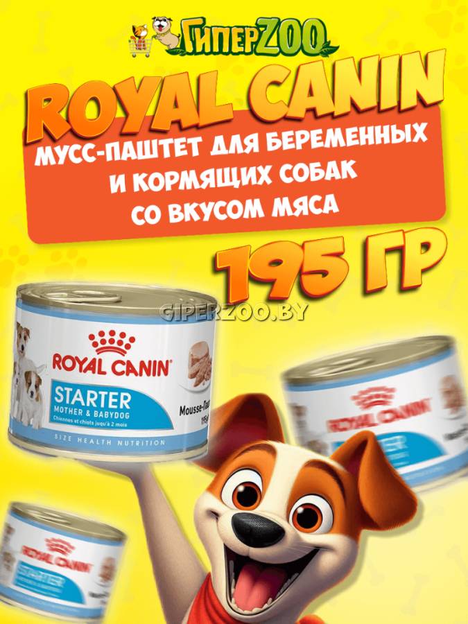 Royal Canin Starter Mother & Babydog (мусс-паштет), 195 гр - это консервированный полнорационный корм для беременных и кормящих собак, а также щенков до 2-х месячного возраста.