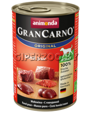 Animonda GranCarno (Гран Карно) с говядиной 800 гр - означает сбалансированное, вкусное и здоровое питание на самом высоком уровне для взрослых собак 1-6 лет.