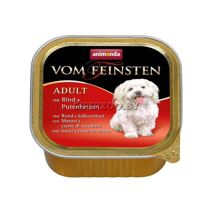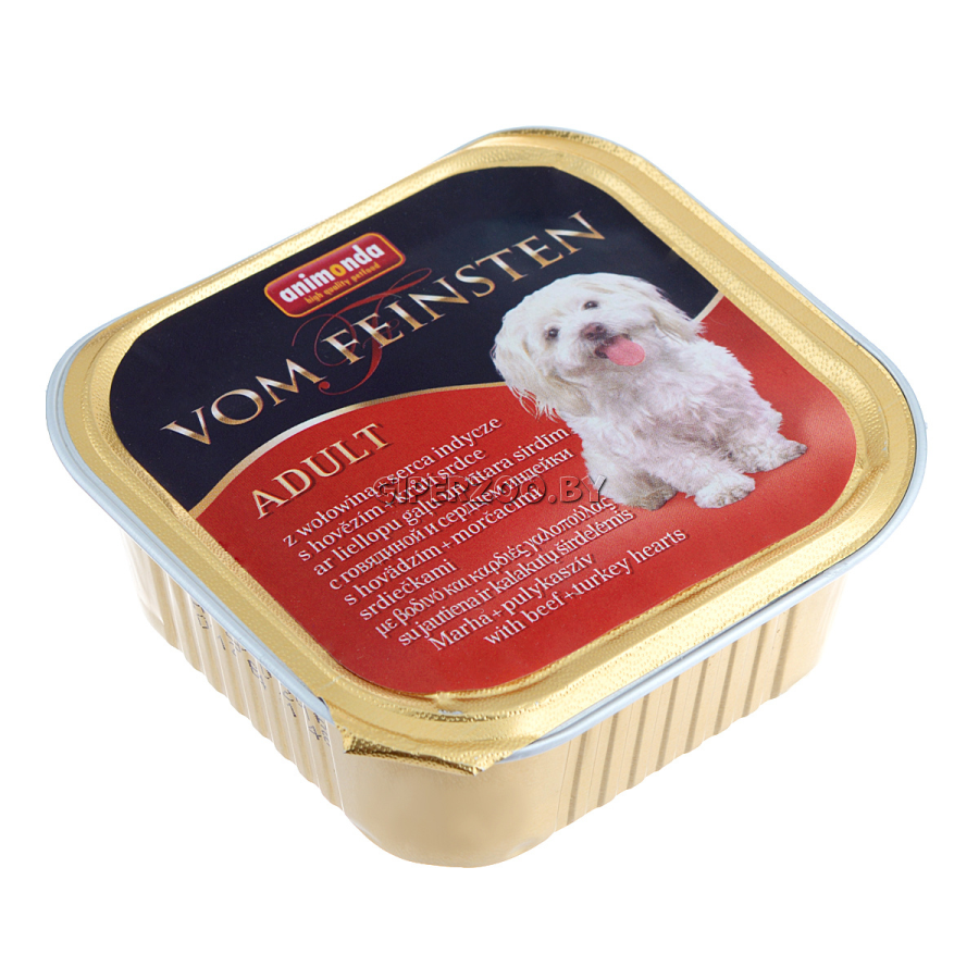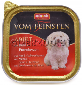 Animonda Vom Feinstein говядина, сердце индейки 150 гр - это полноценный консервированный корм в виде нежного паштета, созданный для взрослых собак всех пород.