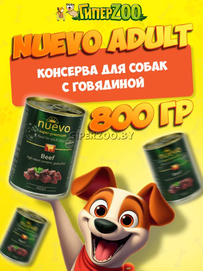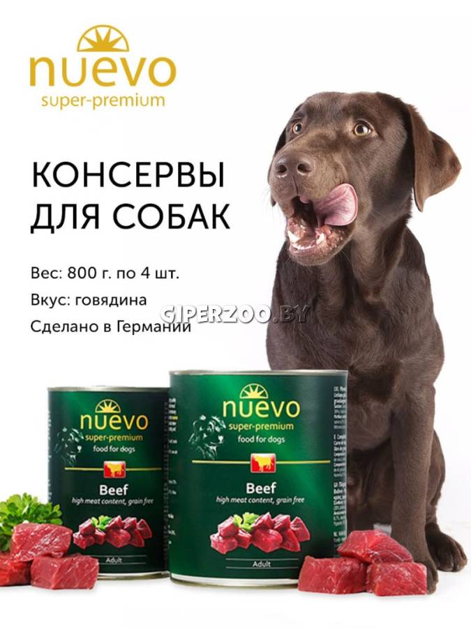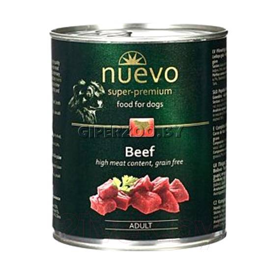 Nuevo Adult с говядиной, 800 гр - высокое сочетание мяса (72%), богатого ценным белком. Этот корм идеально сбалансирован и полноценен, он содержит оптимальное количество всех питательных веществ, необходимых витаминов и минералов. nuevo Beef — отличный источник энергии, легко усваиваемый и очень вкусный.