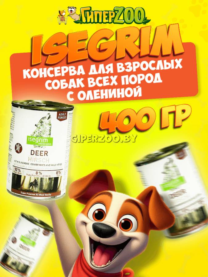 Isegrim FOREST с олениной, 400 гр - полноценный консервированный корм для взрослых собак всех пород супер-премиум класса с олениной, топинамбуром, брусникой и и дикими пряными травами.