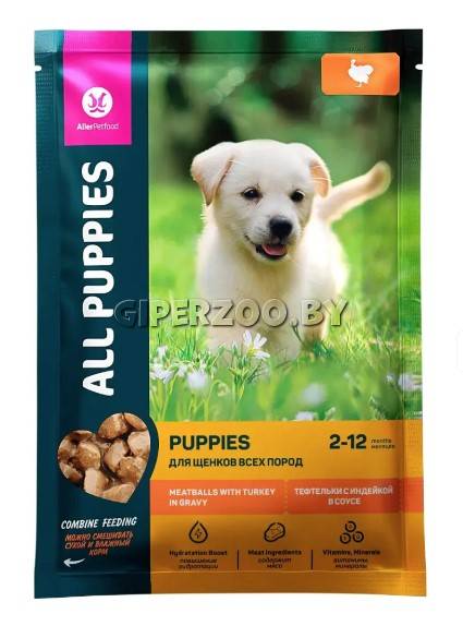 Он разработан на основе результатов последних исследований в области питания домашних животных, а также с учетом международных стандартов (AAFCO/FEDIAF). ALL PUPPIES идеально подходит в качестве полноценного питания. Уровень содержания белков и жиров в сочетание с оптимальным количеством витаминов и минеральных веществ гарантирует сбалансированное питание, которое помогает обеспечить щенка всем необходимым для стабильного роста и развития. ALL PUPPIES производится из высококачественных ингредиентов, не содержит ГМО, сои и вредных красителей. Продукт производится на предприятии, сертифицированном по стандартам ISO 22 000, используемых при производстве продуктов питания для людей. Корм можно использовать как в чистом виде, так и смешивая его с сухими кормами линейки ALL PUPPIES. Рекомендации указаны на упаковке.