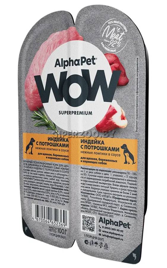 Состав: Мясные ломтики: свежее мясо и субпродукты - 84% (в том числе индейка, говяжьи субпродукты), рис, витаминно-минеральная смесь, комплекс AlphaPet®BIO (зеленогубый моллюск, одуванчик, льняное семя, розмарин, цикорий, томаты, Юкка Шидигера).