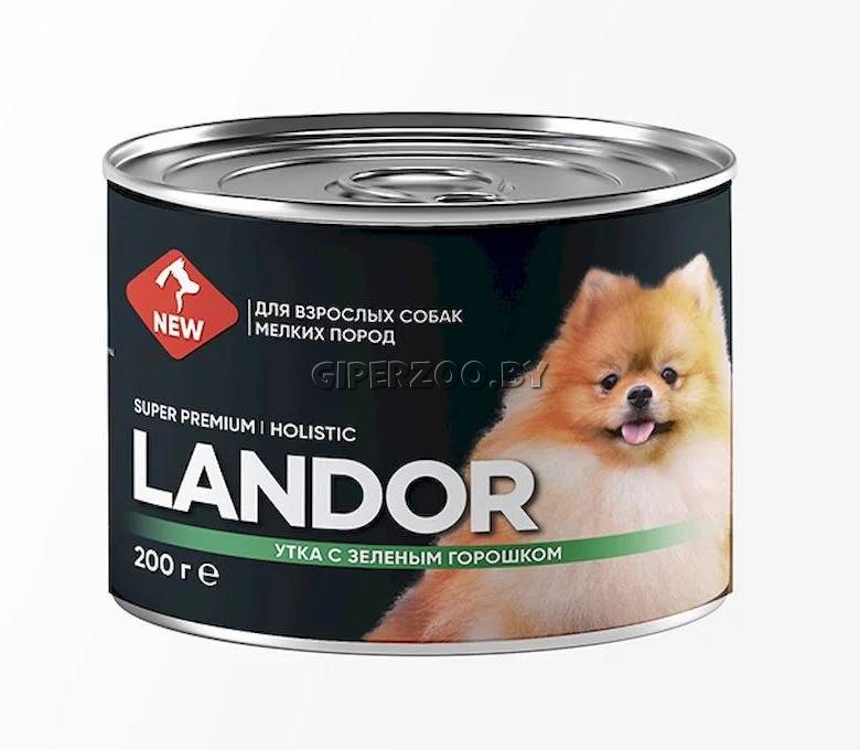 Консервы для собак Landor Adult dog (утка, зеленый горошек), 200 гр – полноценный сбалансированный влажный корм для взрослых собак маленьких пород с уткой и зеленым горошком, изготовлен из свежего мяса и отборных ингредиентов.