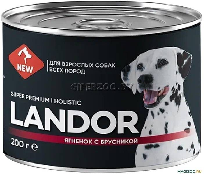 Консевы для собак Landor Adult dog (ягненок, брусника), 200 гр – полноценный сбалансированный влажный корм для взрослых собак всех пород с ягненком и брусникой, изготовлен из свежего мяса и отборных ингредиентов.