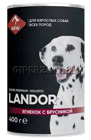 Консевы для собак Landor Adult dog (ягненок, брусника), 400 гр – полноценный сбалансированный влажный корм для взрослых собак всех пород с ягненком и брусникой, изготовлен из свежего мяса и отборных ингредиентов.