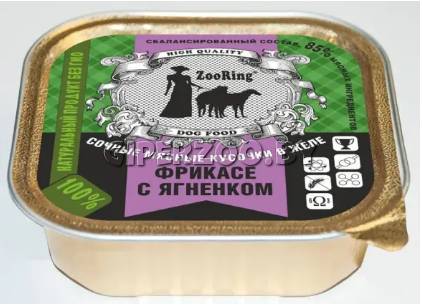 ZooRing Dog Кусочки в желе (Фрикасе с ягненком) — консервированный полнорационный корм для всех пород собак.