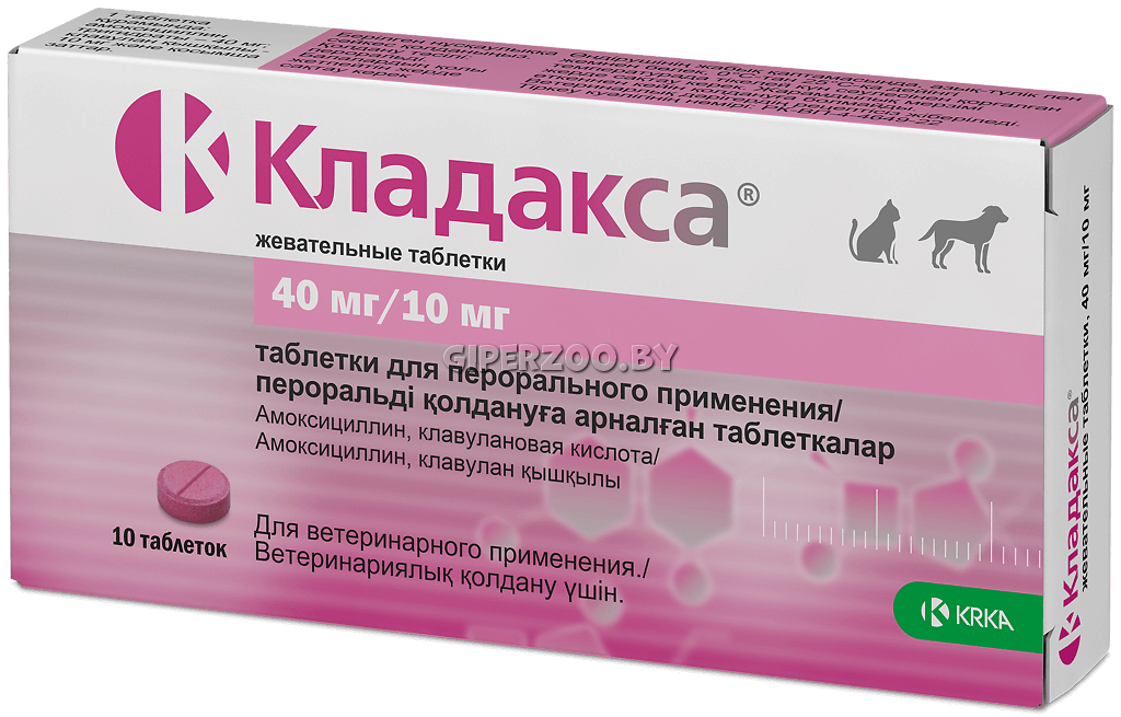 Кладакса жевательные таблетки применяют кошкам и собакам из расчета 12,5 мг/кг массы животного (по сумме действующих веществ) 2 раза в сутки. В тяжелых случаях дозировка может быть увеличена до 25 мг/кг массы животного (по сумме действующих веществ) 2 раза в сутки.