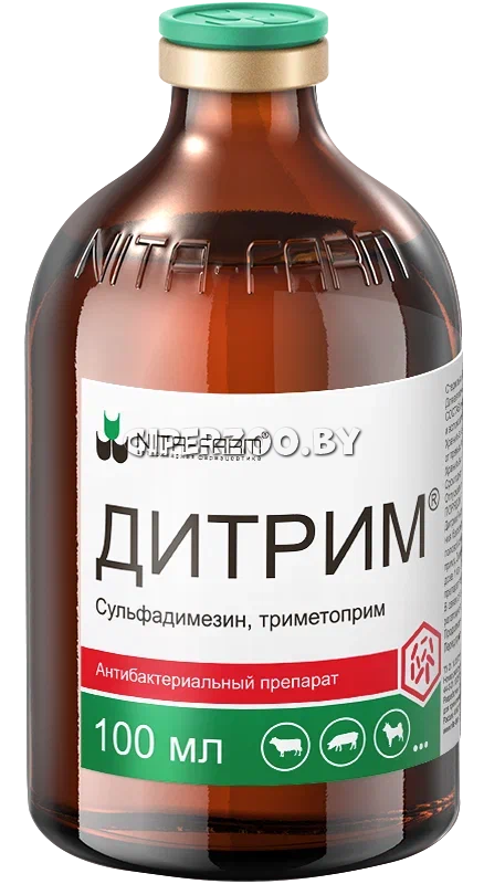 Дитрим – это антибактериальный комбинированный ветпрепарат из группы сульфаниламидов в комбинациях. Действующими вещества являются – триметоприм и сульфадимезин. Они обеспечивают широкий спектр действия и являются активными в отношении грамотрицательных и грамположительных бактерий.