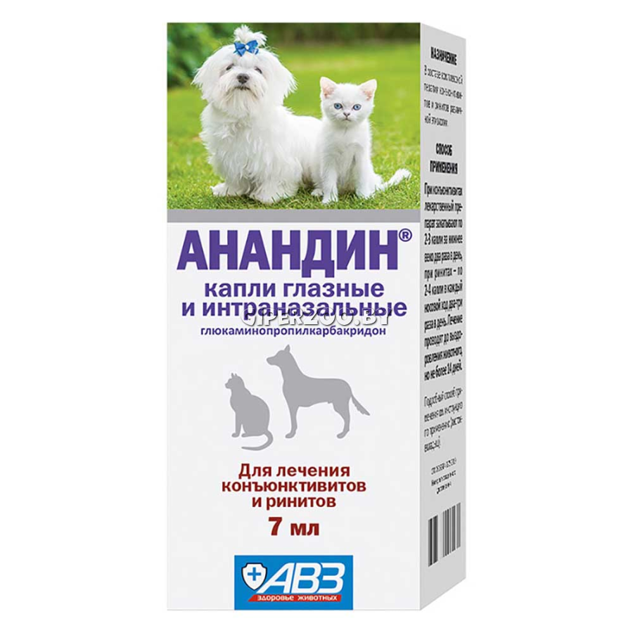 Капли глазные и интраназальные Анандин применяют в комплексной терапии конъюнктивитов и ринитов различной этиологии у собак и кошек.