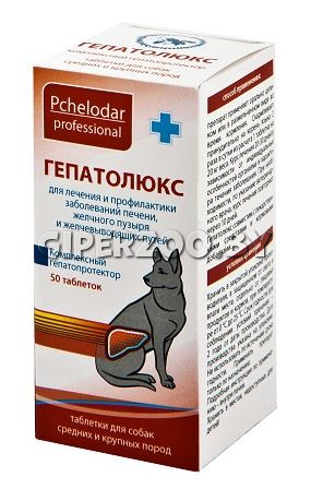 Гепатолюкс таблетки применяют собакам для профилактики и лечения острых и хронических заболеваний печени (гепатит, гепатоз, жировая дистрофия и дегенерация печени), желчного пузыря и желчевыводящих путей различного генеза. Комплексный состав препарата способствует регенерации клеток печени, улучшению ферментной активности, нормализации всех видов обмена веществ, повышению аппетита и усвояемости пищи у животных. Препарат эффективен при интоксикациях, отравлениях и состояниях обезвоживания организма; снижает побочные действия химиотерапевтических, противопаразитарных и других лекарственных средств, обладающих гепатотоксичностью.