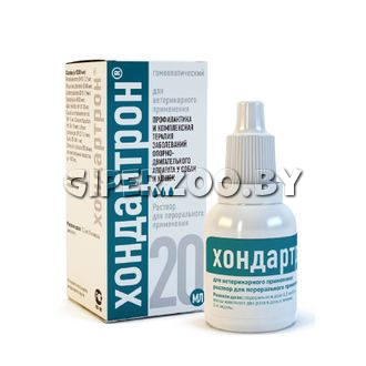 Хондартрон капли вводят перорально в дозе 0,3 мл/10 кг массы животного два раза в день в течение 2-4 недель.