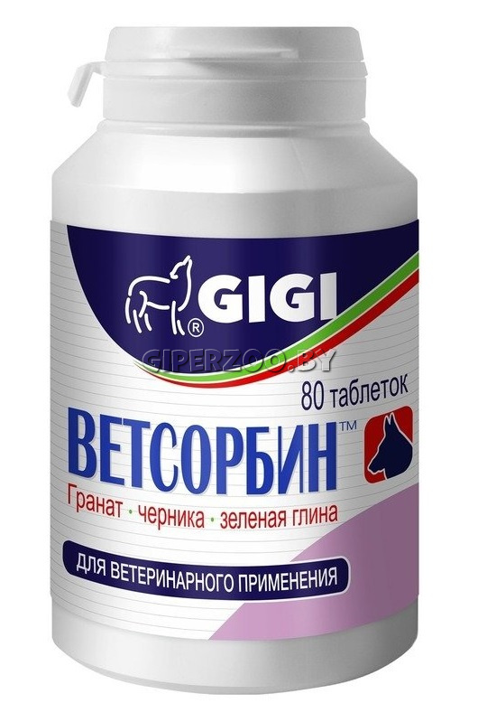 Состав Порошок граната, порошок черники, зеленая глина, улучшитель вкуса, добавочные вещества лактоза и стеарат магния Фармакологическое действие Ветсорбин - быстрая помощь кошкам и собакам при отравлениях и неинфекционной диарее. Добавка быстро устранит причину расстройства, закрепит стул животного и устранит болезненные и дискомфортные ощущения в ЖКТ.