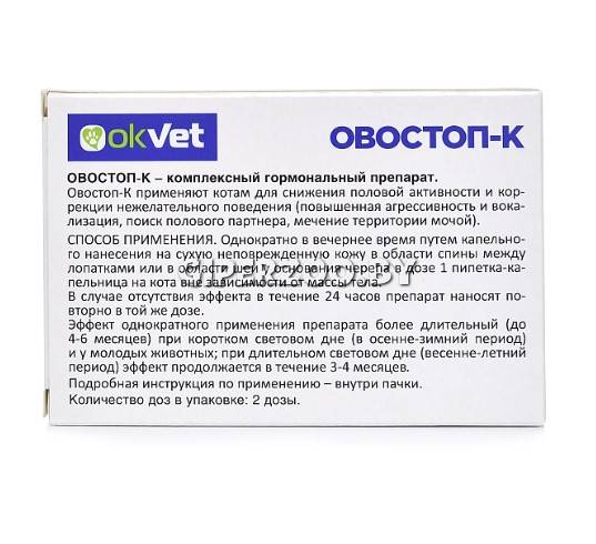 Овостоп применяют кошкам в целях контрацепции и регуляции полового поведения.
