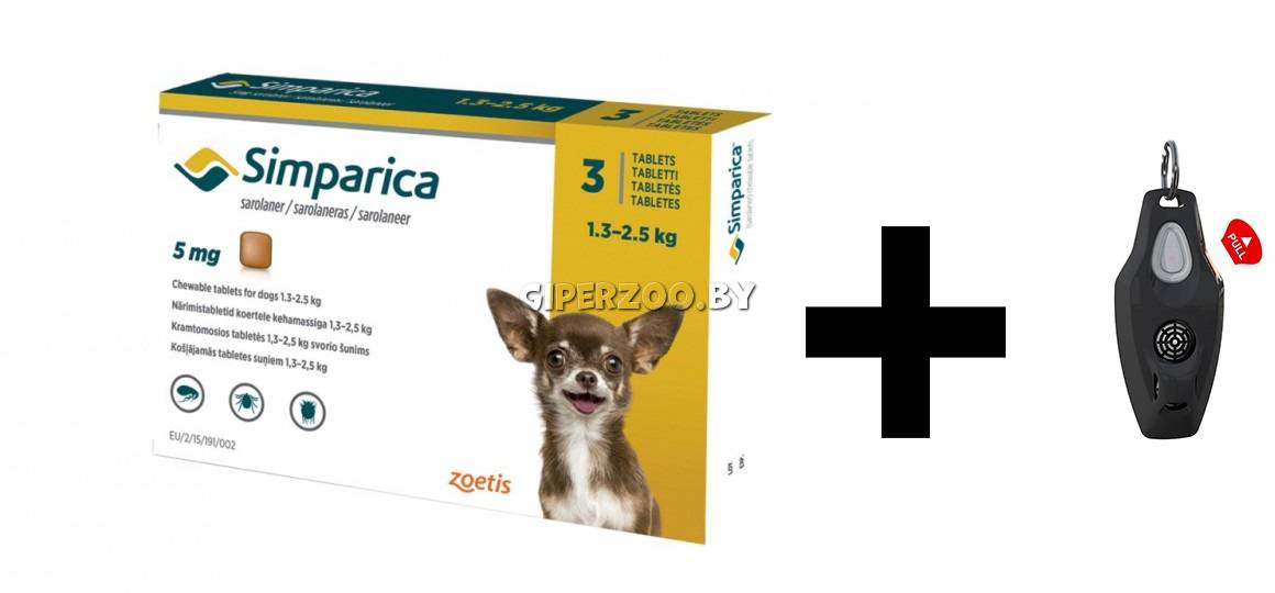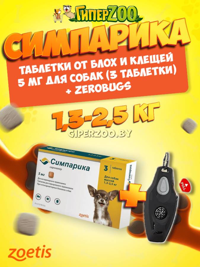 Двойная защита Симпарика для собак 1,3-2,5 кг (упак. 3 табл.)+ Zerobugs