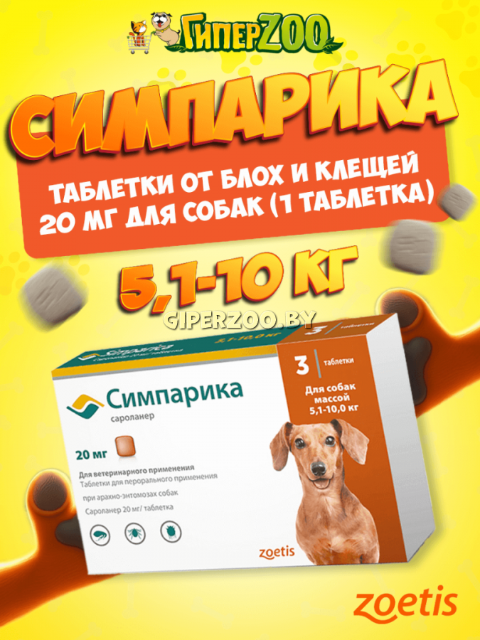 Zoetis Симпарика таблетки от блох и клещей для собак 5,1-10 кг, 1 таблетка