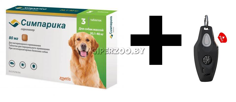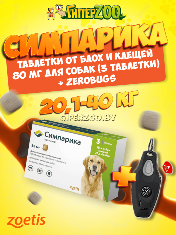 Двойная защита Симпарика для собак 20,1-40 кг (упак. 3 табл.)+Zerobugs