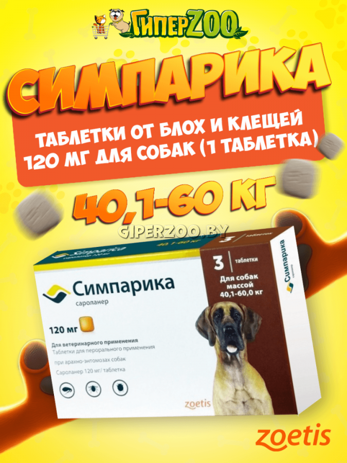 Для эффективного действия препарата, блохи и клещи должны прикрепиться к коже собаки и проглотить активный ингредиент препарата, что вызовет гибель блох через 8 часов и гибель клещей через 12 часов.