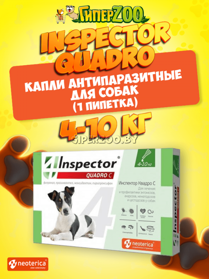 Инспектор Квадро С (Inspector Quadro С) капли для собак 4-10 кг 1 пипетка