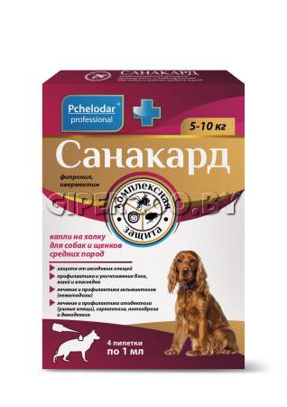 Санакард капли на холку для собак и щенков средних пород 1мл.