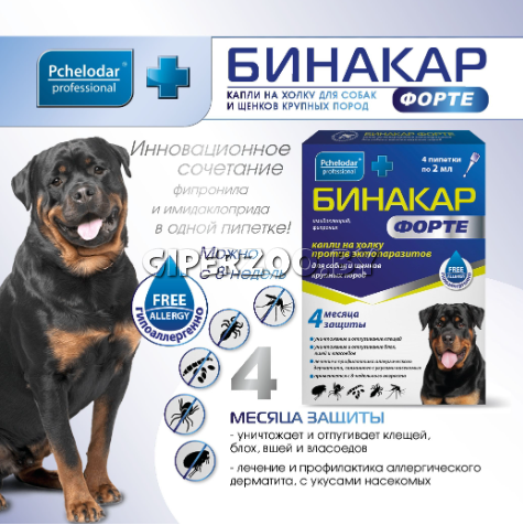 Бинакар ФОРТЕ для собак и щенков крупных пород капли на холку.