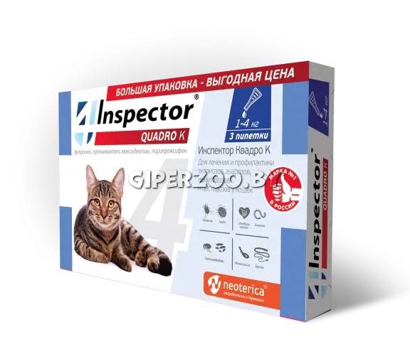 Наши кошки находятся под постоянной угрозой заражения эктопаразитами (клещей, блох и др.) и эндопаразитами (гельминтами, в простонародье глистами). Для надёжной и всесторонней защиты от внешних и внутренних паразитов используйте препараты Inspector Quadro.