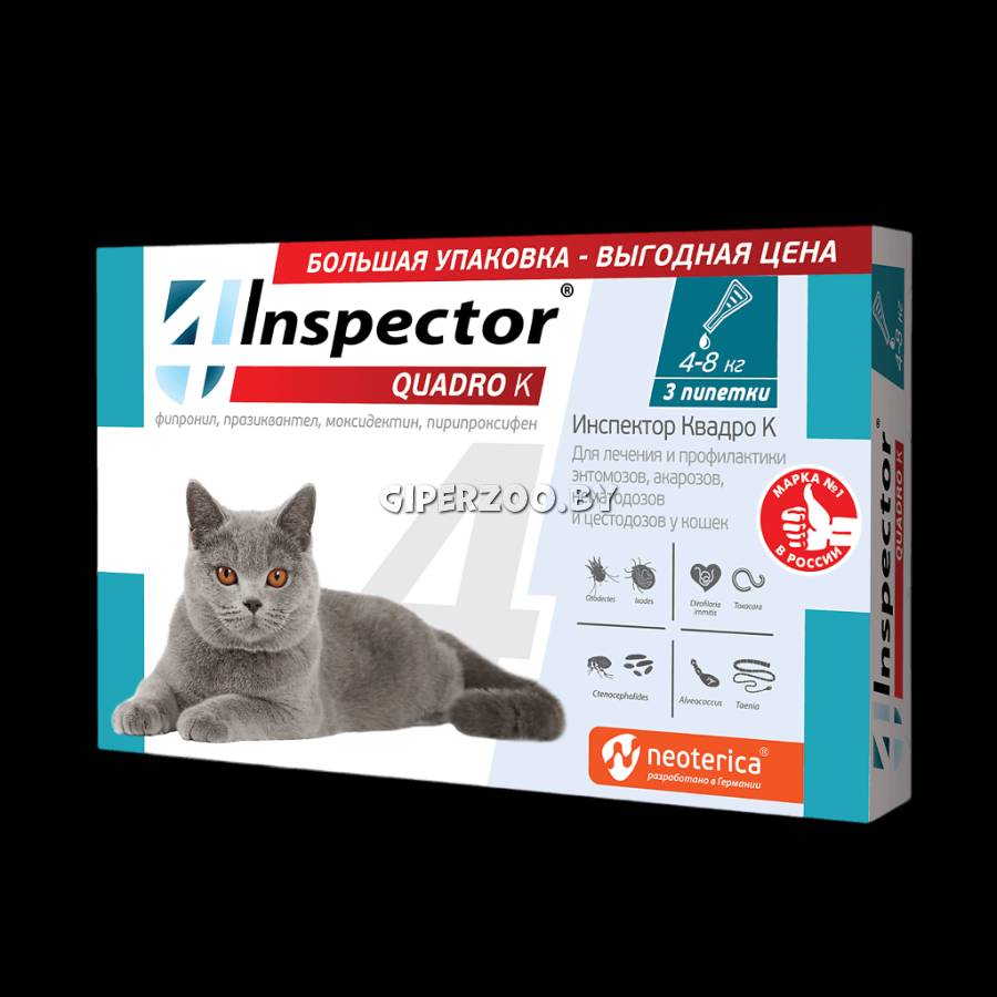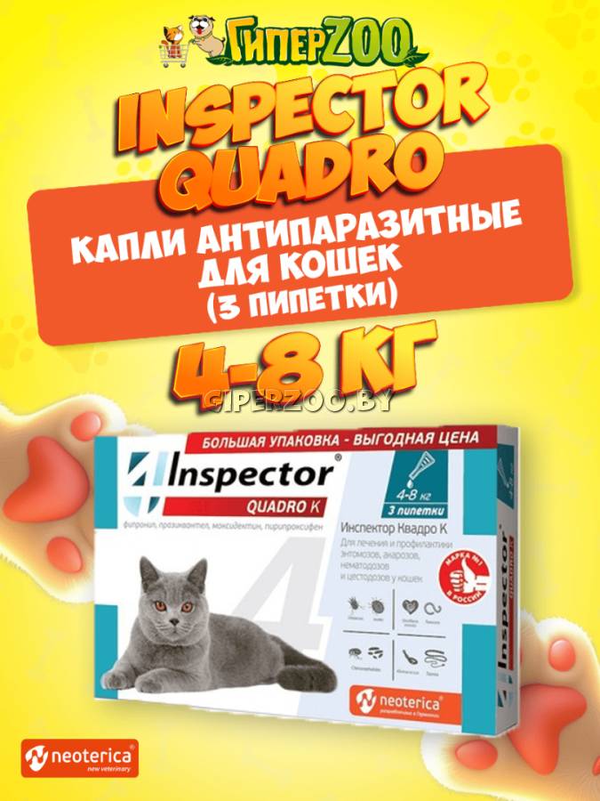 Наши кошки находятся под постоянной угрозой заражения эктопаразитами (клещей, блох и др.) и эндопаразитами (гельминтами, в простонародье глистами). Для надёжной и всесторонней защиты от внешних и внутренних паразитов используйте препараты Inspector Quadro.