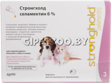 Zoetis Стронгхолд 6% для собак и кошек весом менее 2,5 кг (3 пипетки - 0,25 мл/15 мг)