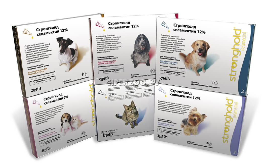 Стронгхолд эффективен против: наружных паразитов (блох, ушных и чесоточных клещей, вшей) Самых опасных внутренних паразитов (дирофилярии и кишечные гельминты)