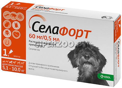 Для лечения собак при саркоптозе, вызванном S.canis, Селафорт применяют двукратно с интервалом 1 месяц, в целях профилактики возможной инвазии препарат рекомендуется: применять 1 раз в месяц.