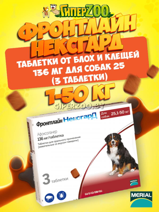 Как применять таблетки Фронтлайн Нексагард для собак 25-50 кг