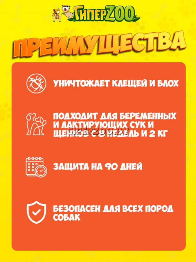 Препарат относится к инсектоакарицидным препаратам, эффективным против иксодовых клещей (Ixodes spp., Dermacentor spp., Rhipicephalus sanguineus), тромбидиформных клещей (Demodex canis, Cheyletiella yasguri), саркоптоидных клещей (Sarcoptes canis, Otodectes cynotis), вшей (Linognathus setosus), власоедов (Trichodectes canis) и блох (Ctenocephalides spp.), паразитирующих на собаках. Он проявляет высокую системную активность после прикрепления эктопаразитов к телу животного и начала питания.Карбамоил бензамид фенил изоксазолин, входящий в состав препарата является инсектоакарицидом системного действия группы изоксазолинов, ингибитором компонентов нервной системы членистоногих, который нарушает передачу нервных импульсов, что приводит к параличу и гибели эктопаразитов. Привлекательный для питомцем вкус - они с легкостью съедят его. Аналог Бравекто.