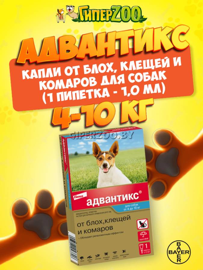Доступен в упаковке по 1 и 4 пипетки Для профилактики Адвантикс рекомендуется применять 1 раз в месяц