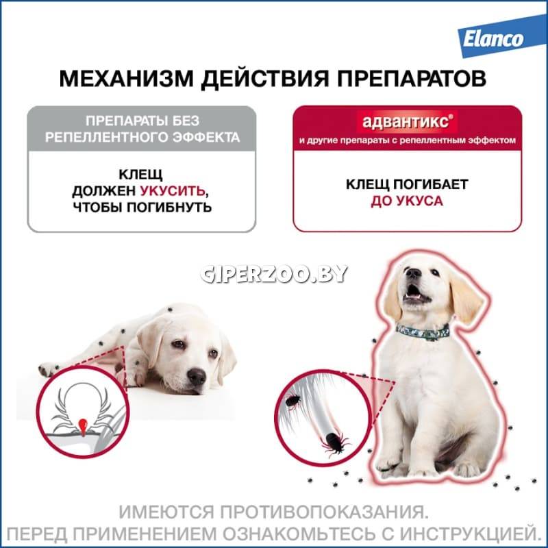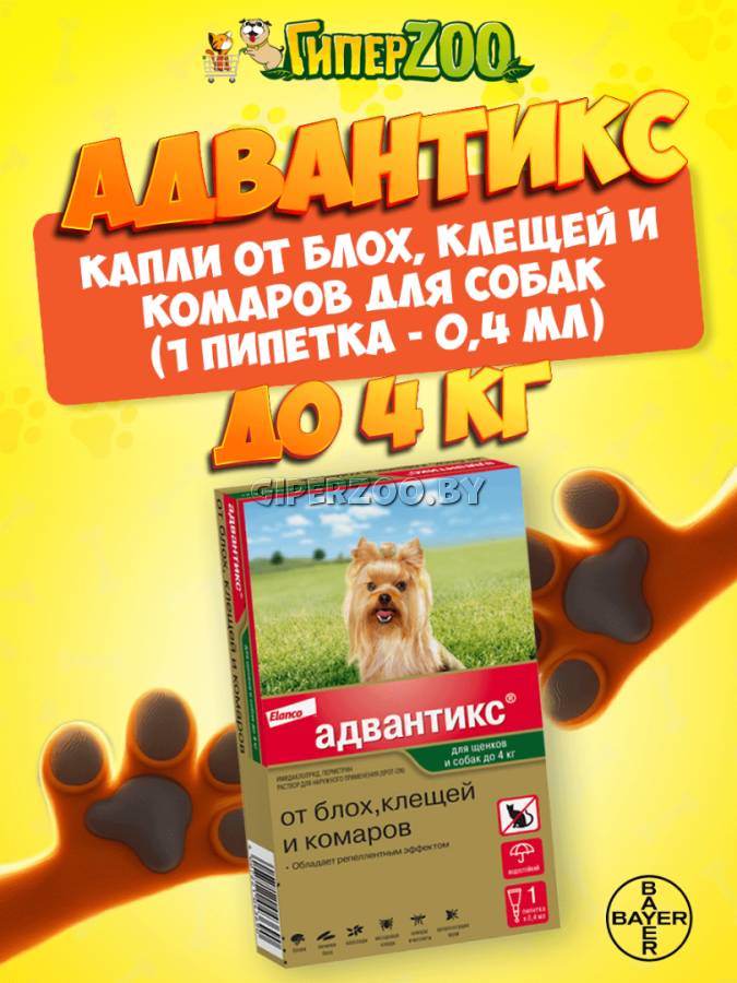 Elanco Адвантикс капли на холку от блох и клещей для собак до 4 кг, 1 пипетка 0,4 мл – препарат, который помогает защитить собаку до укуса от самых распространенных представителей рода иксодовых клещей в России, от блох и назойливых комаров, москитов и мух – переносчиков опасных заболеваний, а также аллергических реакций на их укус.