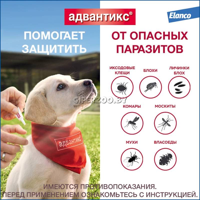 Доступен в упаковке по 1 и 4 пипетки Для профилактики Адвантикс рекомендуется применять 1 раз в месяц