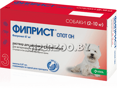 для собак весом 2-10 кг - пипетка 0,67 мл;