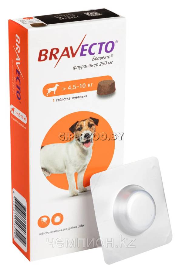 Бравекто выпускают в форме таблеток, которые упаковывают по 1 штуке в запаянные блистеры из алюминиевой фольги.