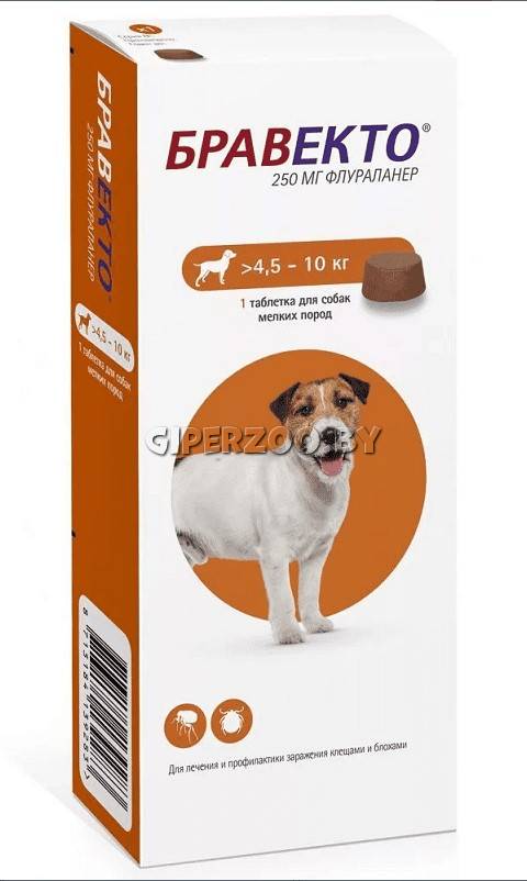 Бравекто применяют для защиты собак от заражения клещами и блохами, а также для лечения демодекоза.
