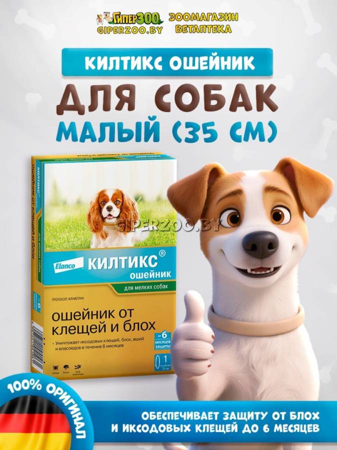 Elanco Килтикс ошейник от блох и клещей малый обеспечивает защиту от блох и иксодовых клещей в течение 6 месяцев. Подходит для всех собак старше 3-месячного возраста.