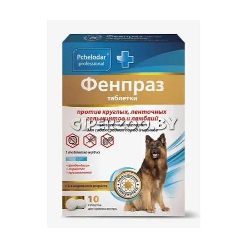 Фенпраз – универсальный антигельминтик против цестодозов и нематодозов собак. Фенпраз обладает широким спектром антигельминтного действия на все стадии развития круглых и ленточных червей. Входящее в состав пчелиное маточное молочко оказывает гепатопротекторное действие, улучшая работу печени, и тем самым защищает ее от влияния неблагоприятных факторов.