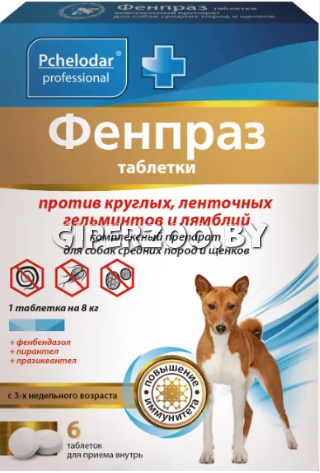 Фенпраз – универсальный антигельминтик против цестодозов и нематодозов собак. Фенпраз обладает широким спектром антигельминтного действия на все стадии развития круглых и ленточных червей. Входящее в состав пчелиное маточное молочко оказывает гепатопротекторное действие, улучшая работу печени, и тем самым защищает ее от влияния неблагоприятных факторов.