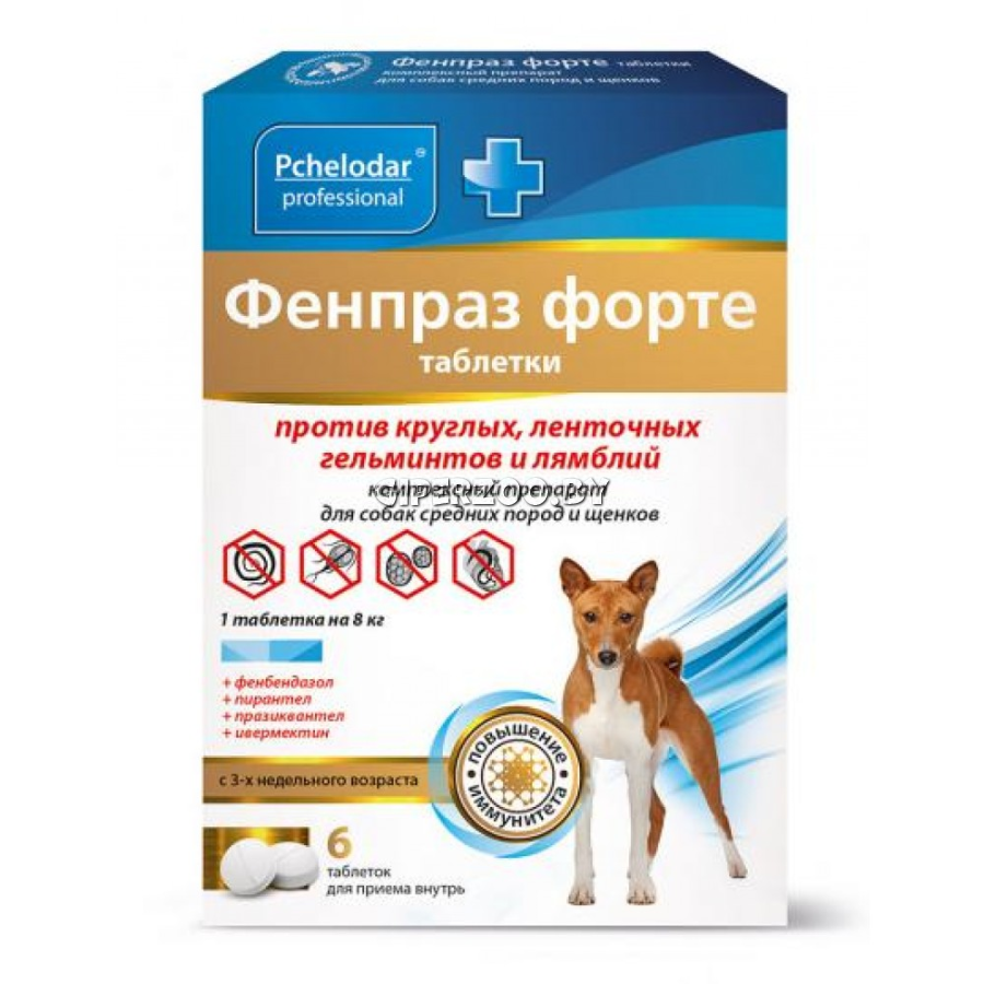 Фенпраз форте таблетки применяют собакам и щенкам с 3-х недельного возраста с профилактической и лечебной целью при нематодозах, цестодозах ЖКТ, гиардиозе, (лямблиоза), а также для профилактики дирофиляриоза.